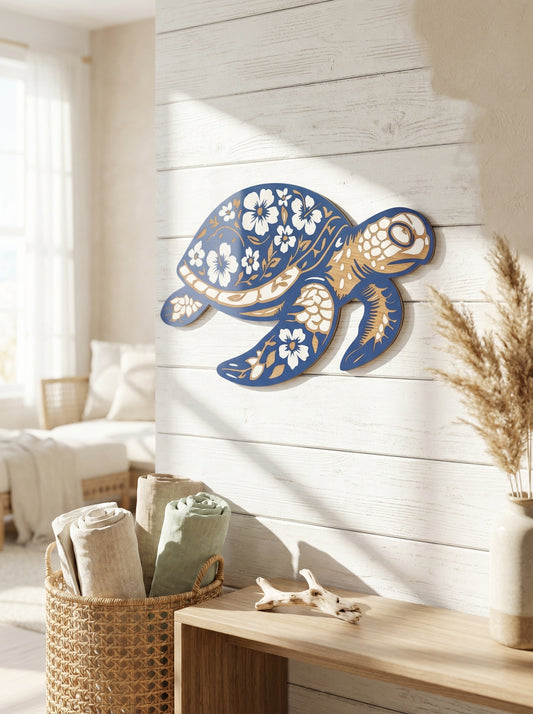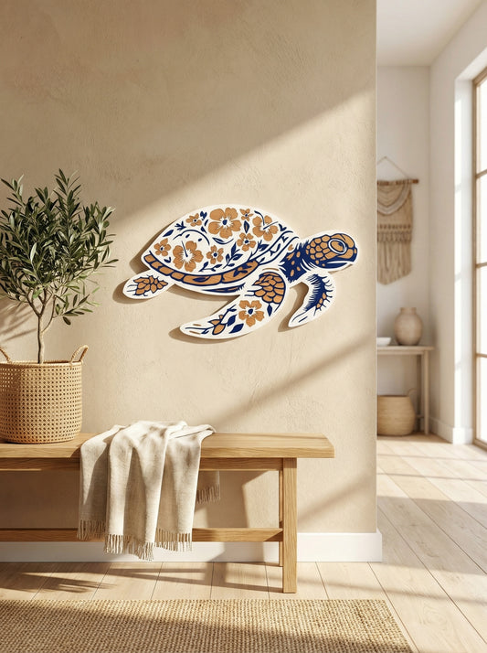 Mandala Sea Turtle Wall Display- Wood and Acrylic (Blue Outline)